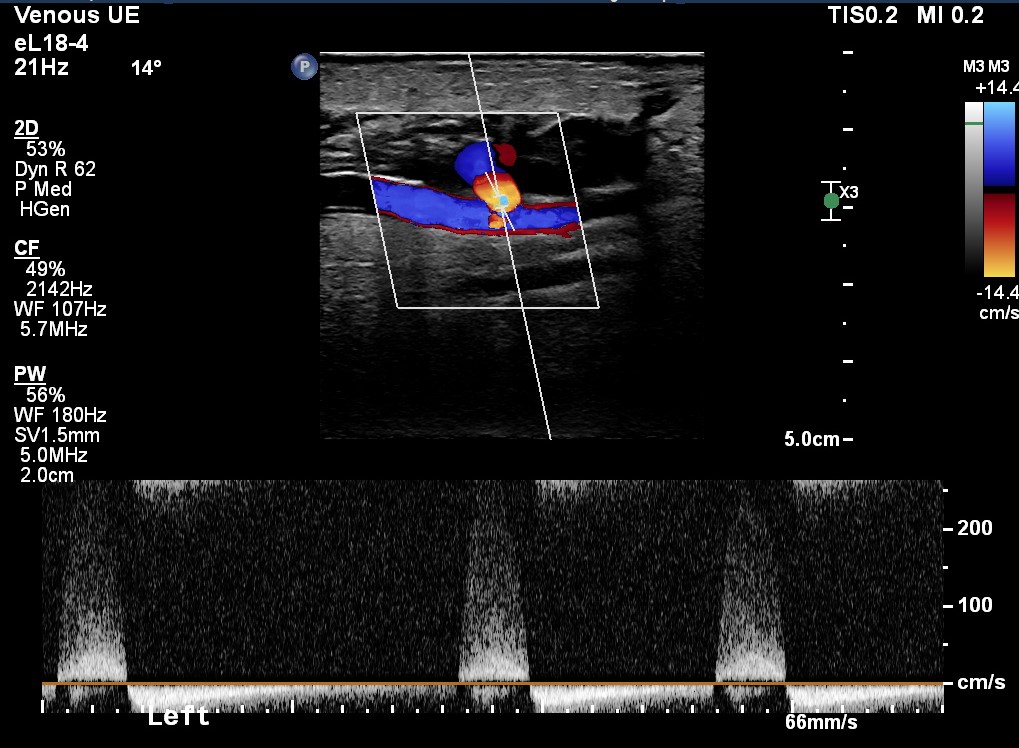 Figure 3 - Demonstrates the Spectral Doppler trace, this has a "to and fro" waveform.