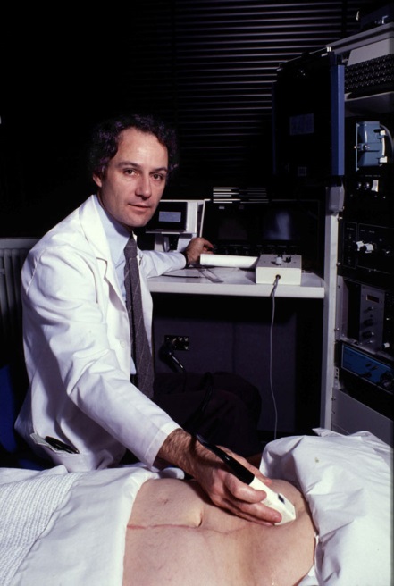 The team at the Institute of Cancer Research and Royal Marsden Hospital at this time built its own ultrasound scanners for clinical use (with the new “grey scale” imaging method), and had a collaboration with EMI Central Research Laboratories. At the time, EMI was the world’s largest producer of vinyl records, but had also pioneered airborne radar, commercialised television and developed the x-ray CT scanner from the Nobel Prize winning invention that Godfrey Hounsfield had made while working there. During the late ‘70s and early ‘80s EMI were also a leader in medical ultrasound. They had built, in part with David’s advice, one of the early commercial phased array abdominal ultrasound scanners.